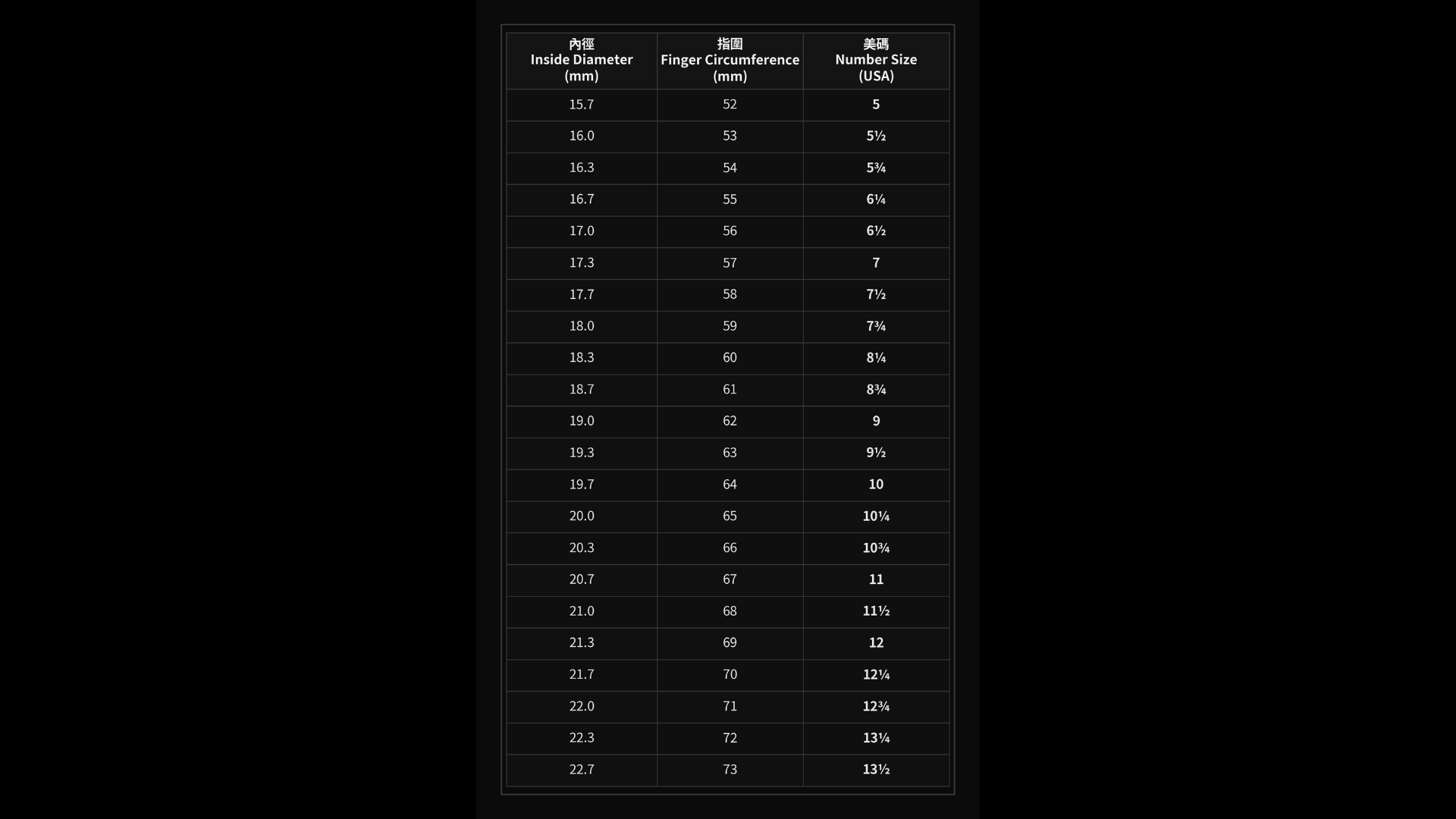 此數值僅供參考,根據您手指的形狀,可能會存在一些誤差。